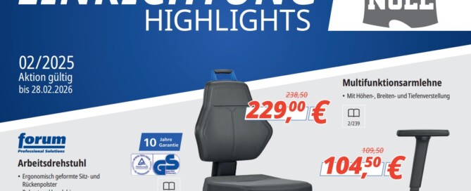 Hier finden Sie die aktuelle Aktion mit den Highlights aus dem Bereich Betriebseinrichtung: Arbeitsdrehstuhl, Tischwagen, Klappbügelwagen, Anti-Ermüdungsmatten, Zählwaage, Flügeltürschränke und vieles vieles mehr!